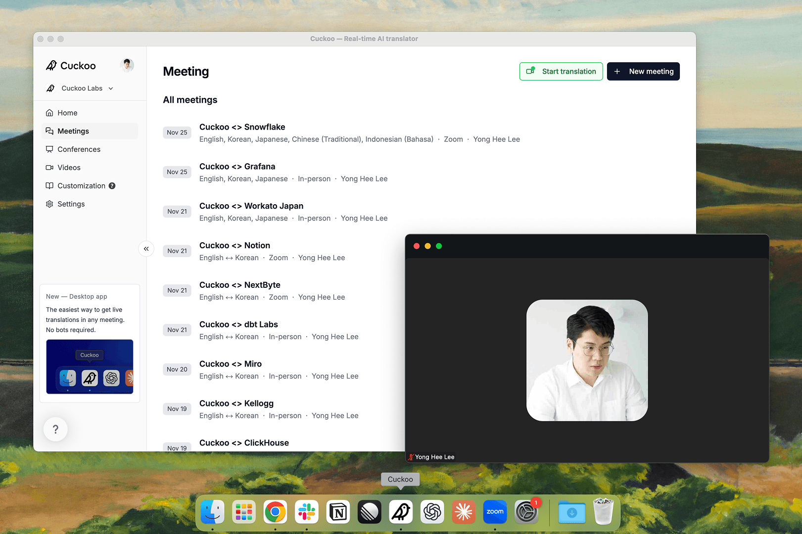 Today, we’re making the Cuckoo desktop app for macOS and Windows generally available. Our desktop app is the easiest and most reliable way to get real-time translation in any meeting.