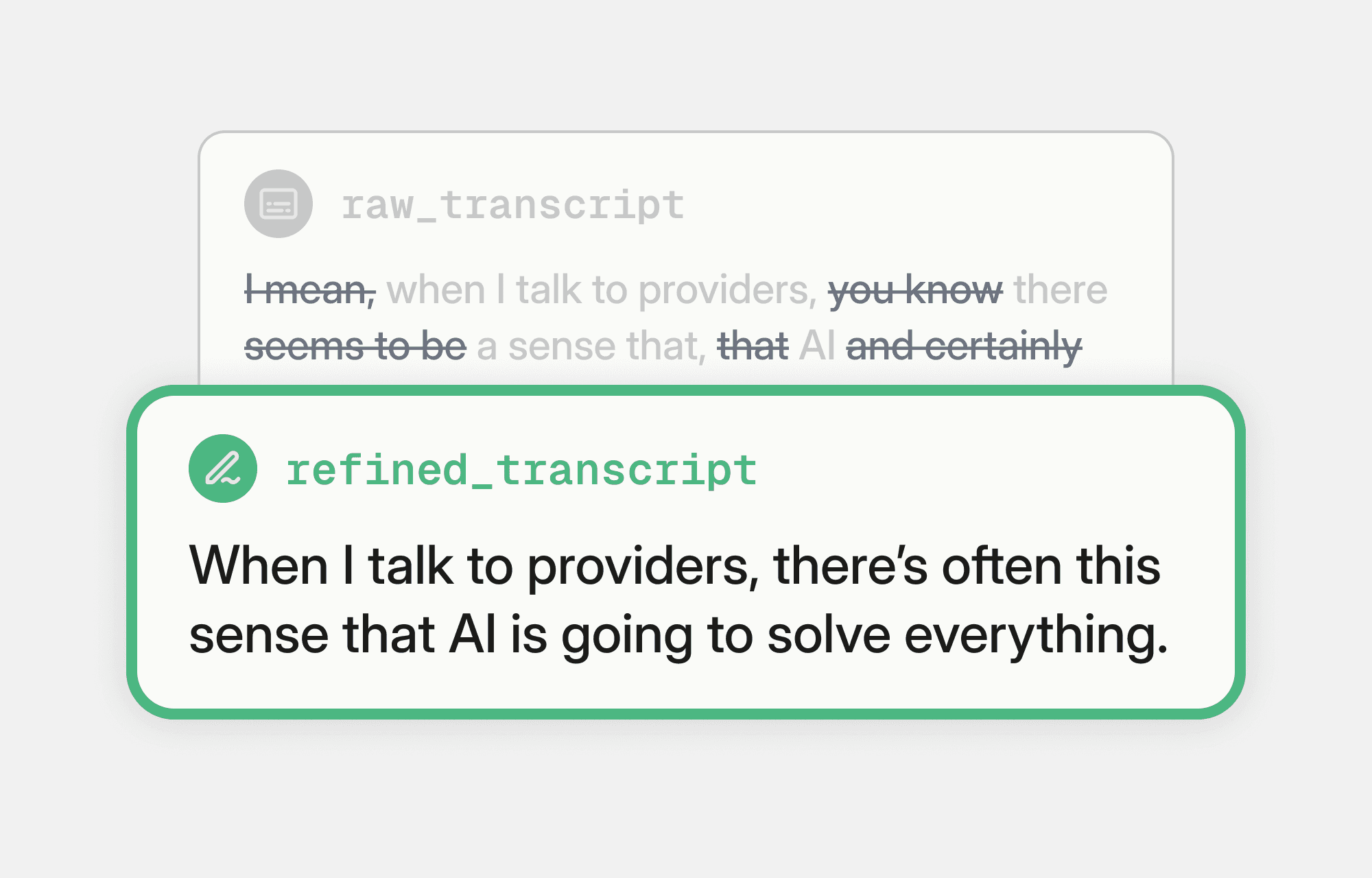 Start with clean, polished transcript by removing filler words and redundant phrases.